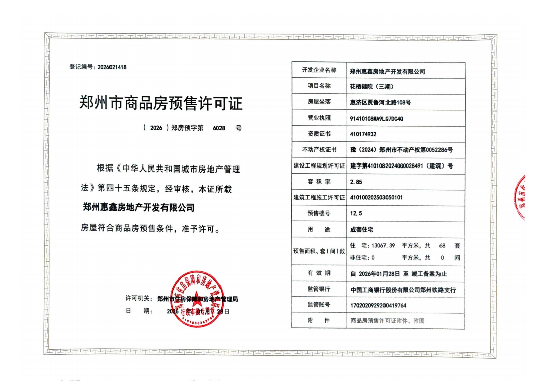 新春?jiǎn)⑿鲁蹋輬?bào)傳佳音。1月28日,鐵建投城發(fā)·花棲樾項(xiàng)目順利取得5#、12#、19#樓商品房預(yù)售許可證,為項(xiàng)目新春置業(yè)熱潮注入動(dòng)能,為首季“開(kāi)門(mén)紅”筑牢根基。